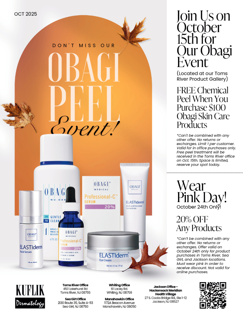 Kuflik Dermatology is a dynamic healthcare institution providing several convenient office locations throughout Ocean County. Our entire family utilizes the professional dermatology services and enjoys the ease of appointment scheduling and the professionalism and compassionate care of all the physicians and office technicians. We strongly recommend this facility.